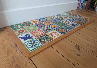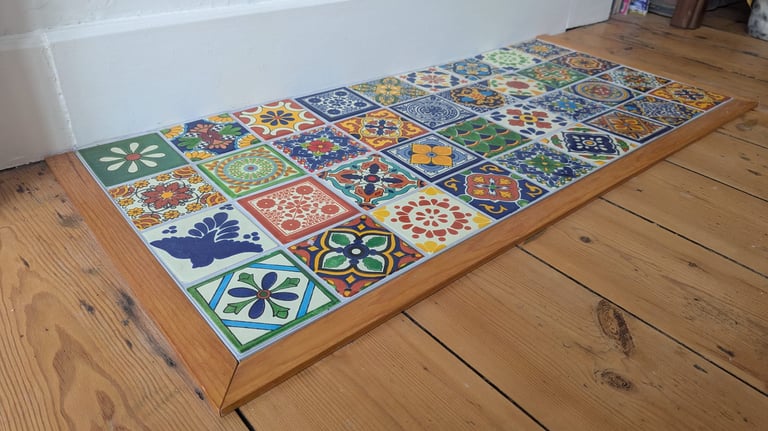 This client wanted to cover up the old hearth from their fireplace, I suggested these colourful tiles and wood surround to match the flooring.